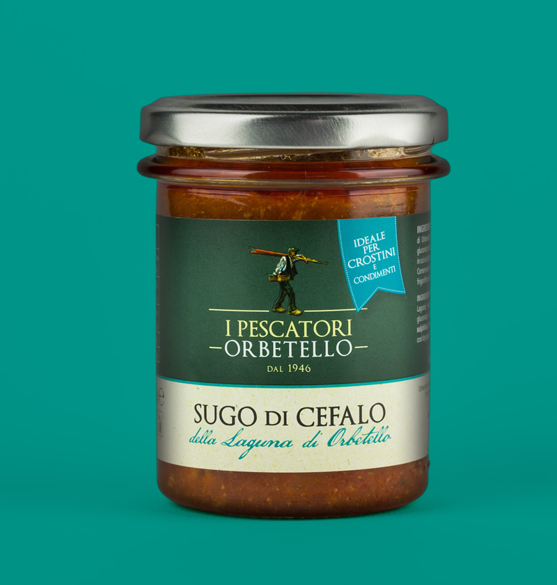 Il cefalo è da sempre una specie autoctona della laguna. Del cefalo vengono lavorati i filetti  per ottenere una polpa saporita cucinata con pomodoro e olive per un sugo pronto che preserva il gusto e il profumo come appena preparato.